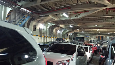 | Deretan mobil yang diparkir dalam kapal ferry (Foto: Novi) |